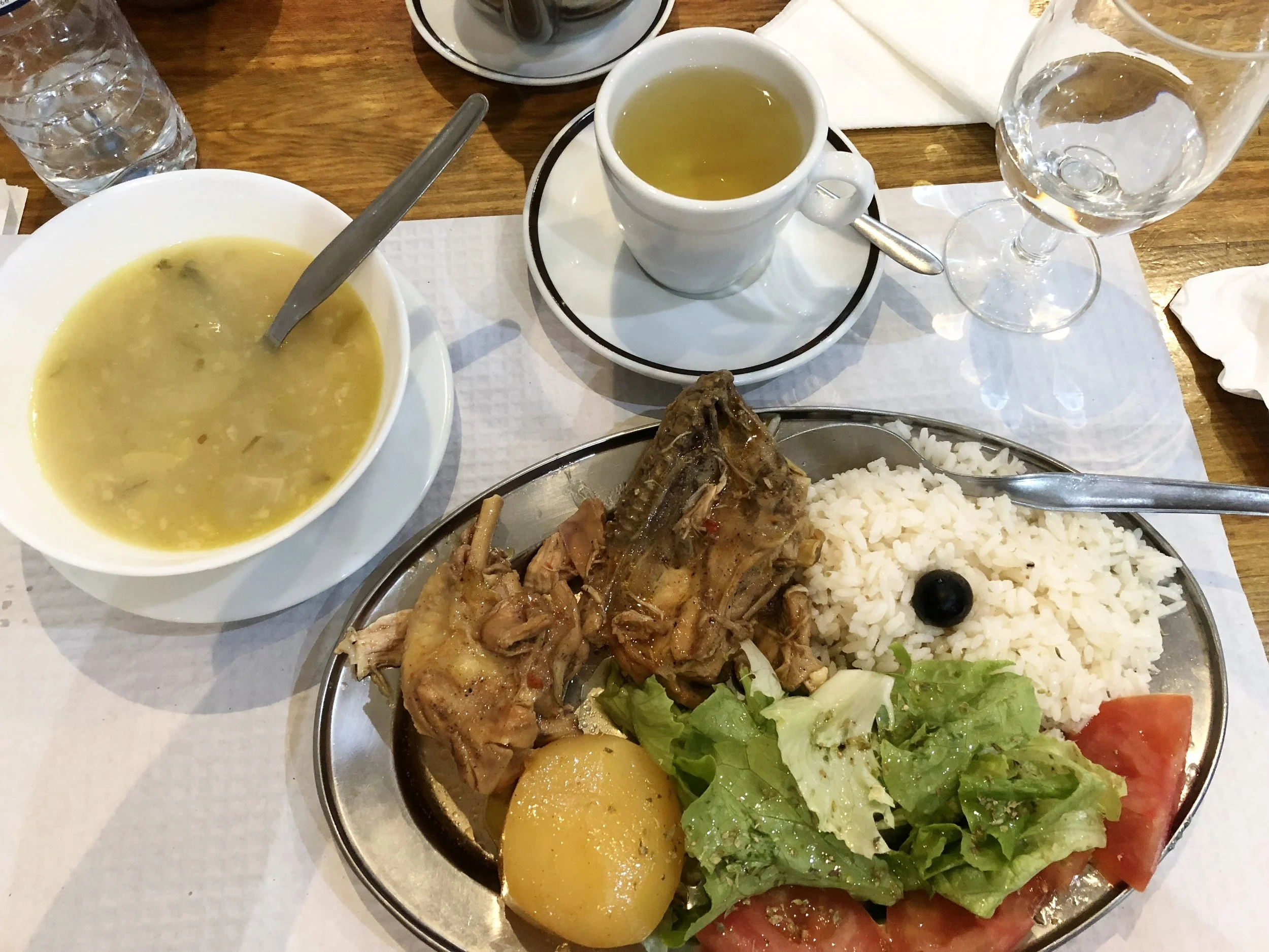 - I got the soup of the day, chicken with rice, potatoes & salad, tea, and water and it was unbelievably good. I also had leftovers. Ambiance is typical Portuguese pub/cafe.