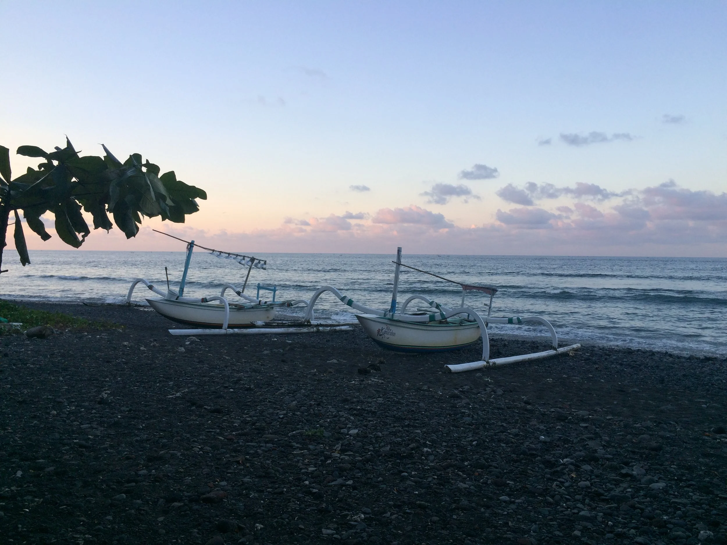Balinese sunset on the black rock beaches of Amed.