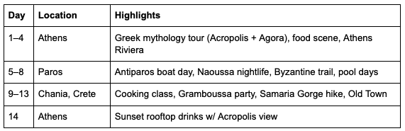 We hit three spots: Athens, Paros, and Crete. Along the way, we cobbled together a mix of point redemptions, cash, ferries, and flights...including one very questionable airline experience. This post blends our best recommendations with a few lessons learned the hard way. You’ll get both: the best smashed biscuit dessert and the truth about Sky Express.