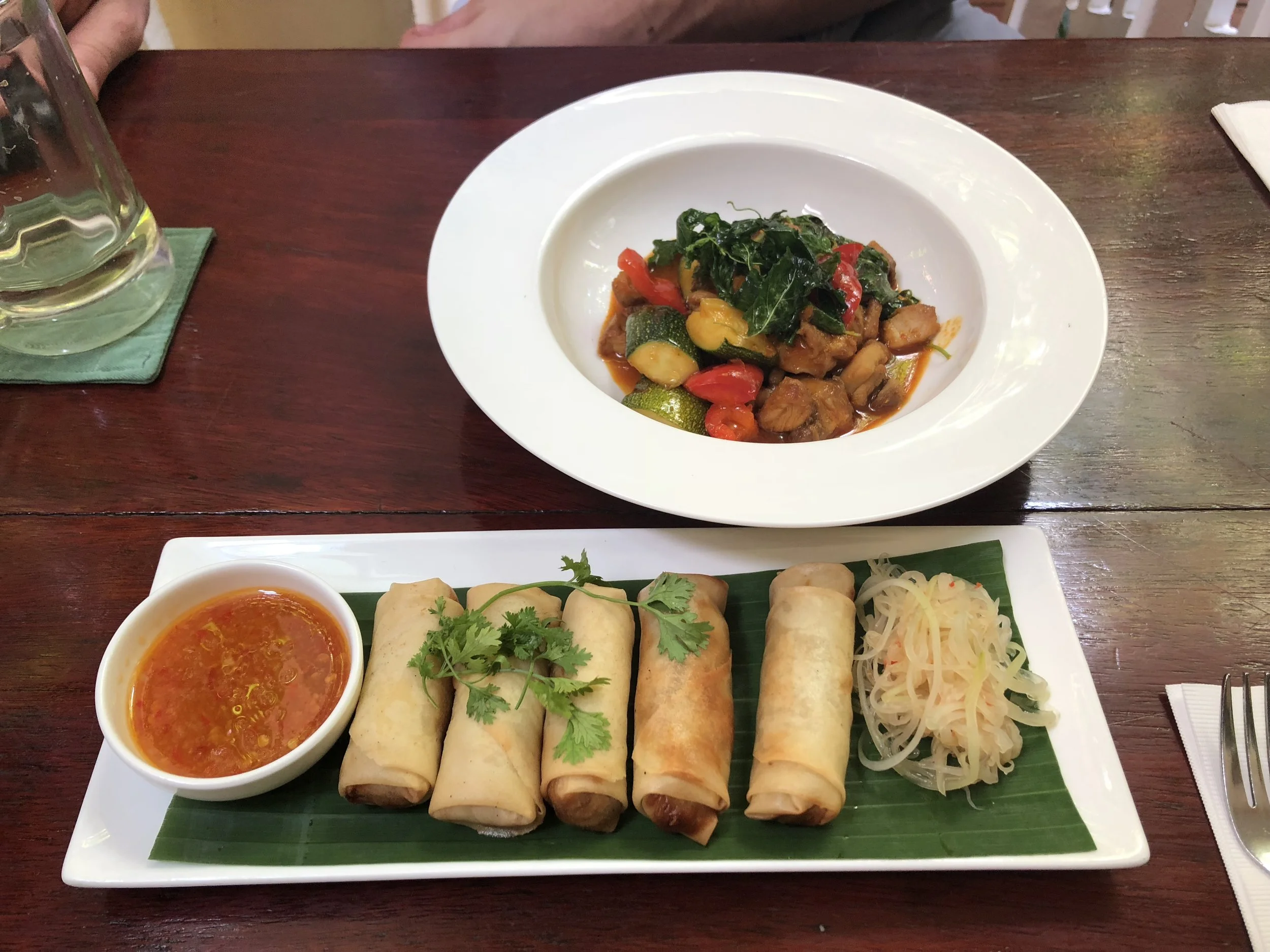Our lunch of spring rolls and cashew chicken at Romdeng in Phnom Pehn.