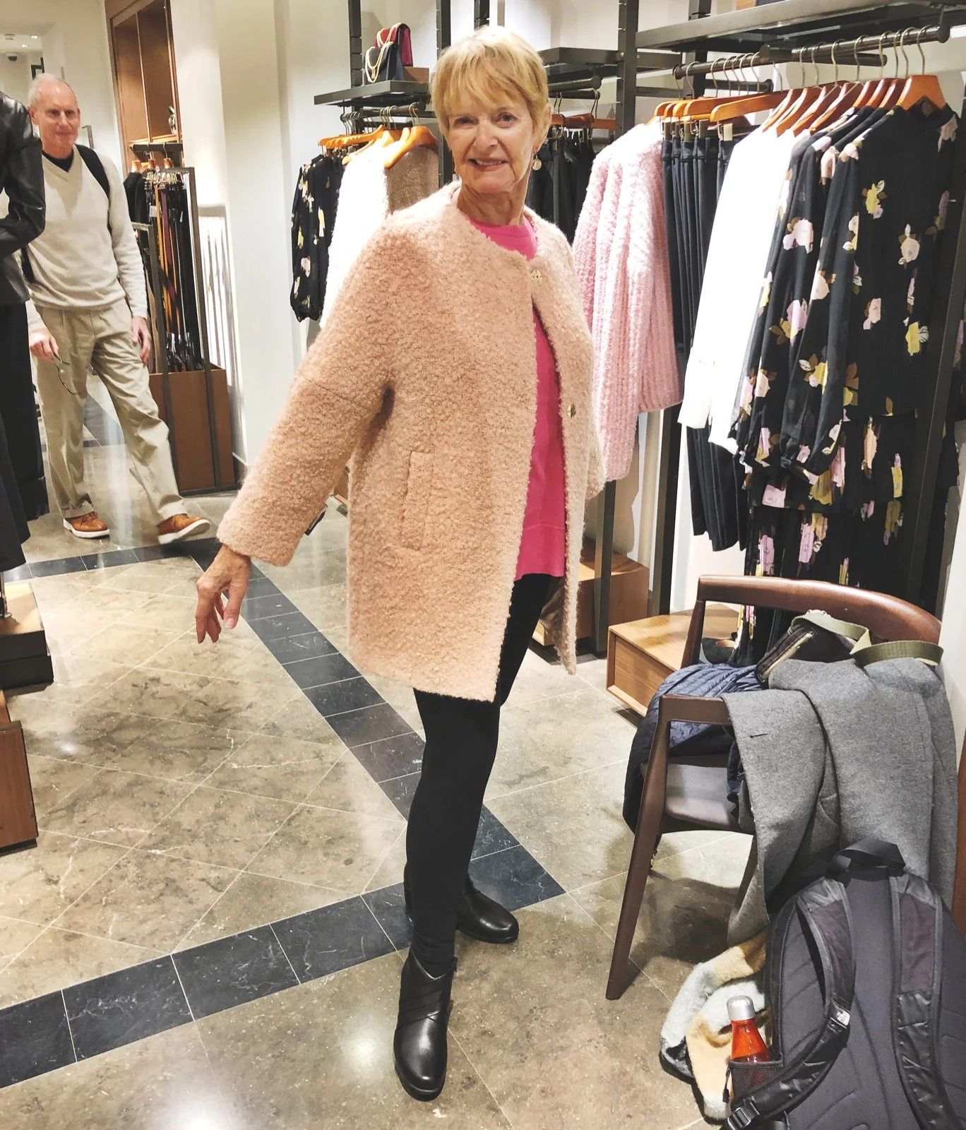 My fashionista Grandma modeling a coat in the Barcelona airport, while my Papa (author of this post) looks on with wonder.