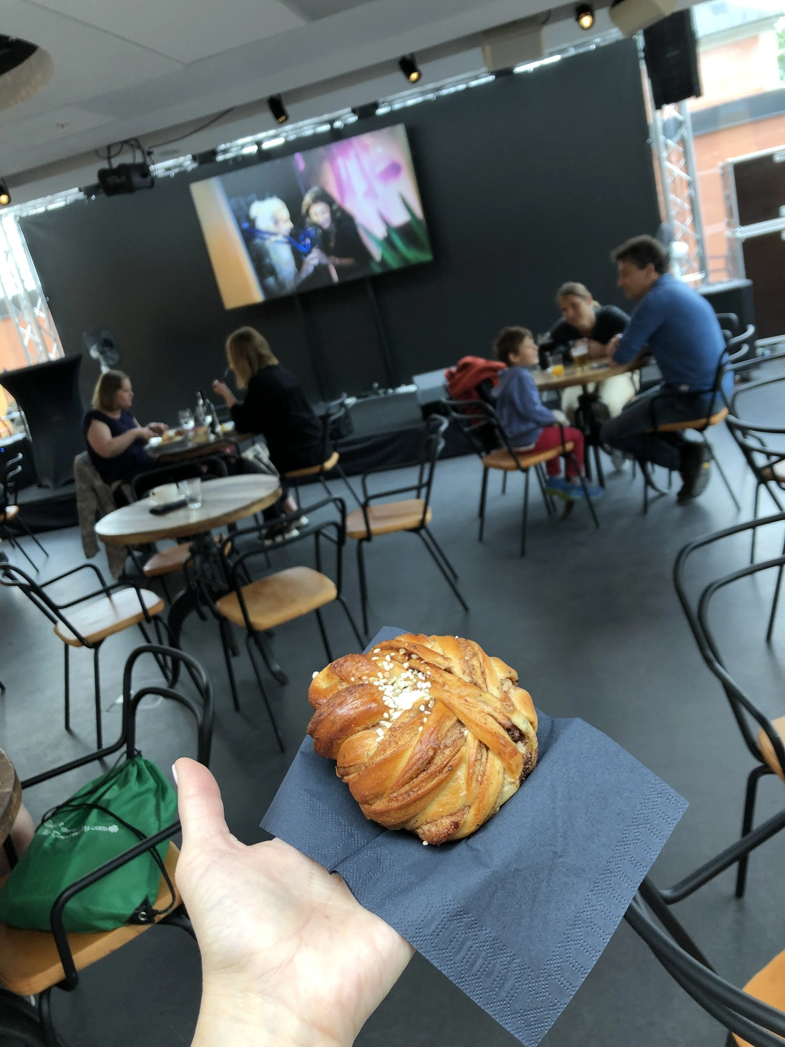 Grabbing a spot of fika (Swedish culturally-enshrined coffee/pastry time) in the Pop Hotel of the ABBA Museum. Swedish pastries are only ok.
