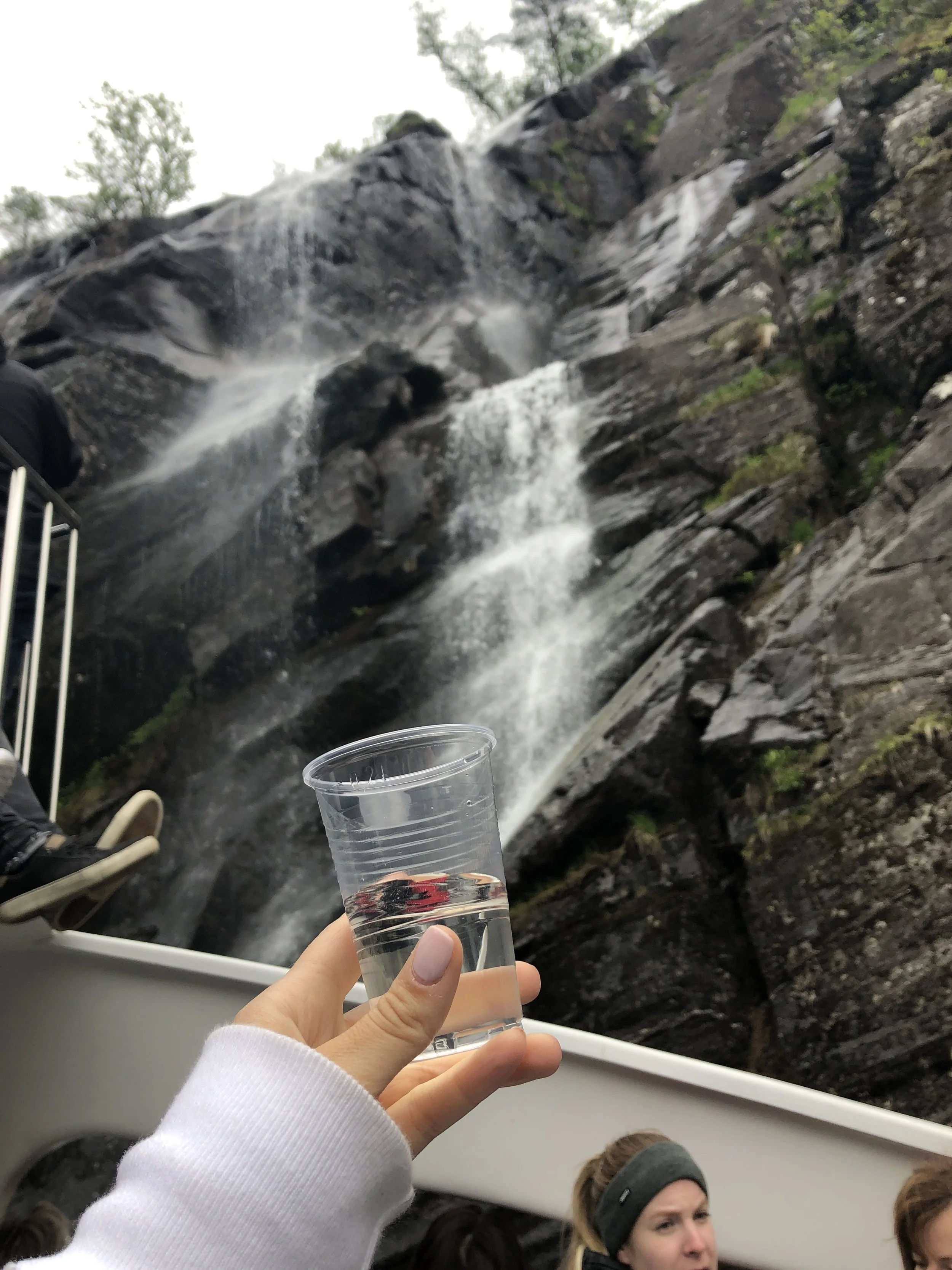 Drinking fresh fjord water from a waterfall in Mo, a tiny village up the fjord from Bergen.